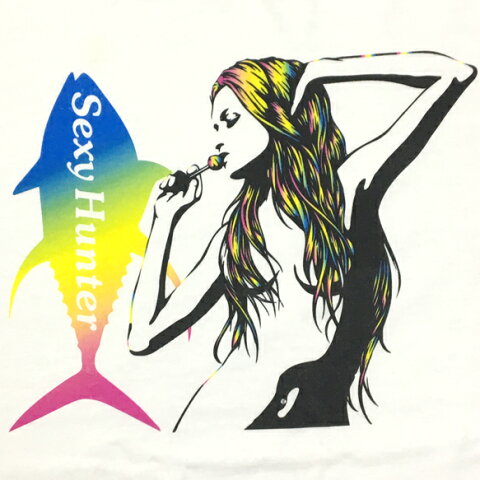 【モデル】 女性:身長158cm Sサイズ着用 男性:身長171cm Mサイズ着用 【素材】 綿:100% 5.6oz 【コメント】 キハダマグロをGETしたセクシーガール! レインボーのシルエットマグロ☆